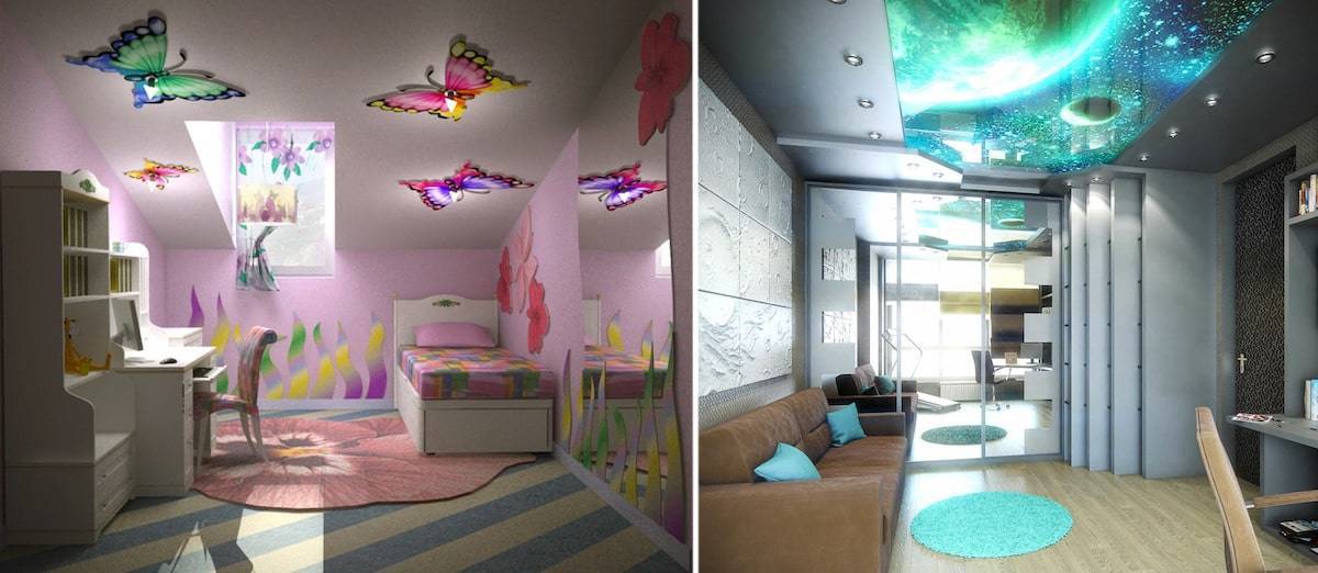 Большой популярностью 3D потолоки пользуются в детских комнатах