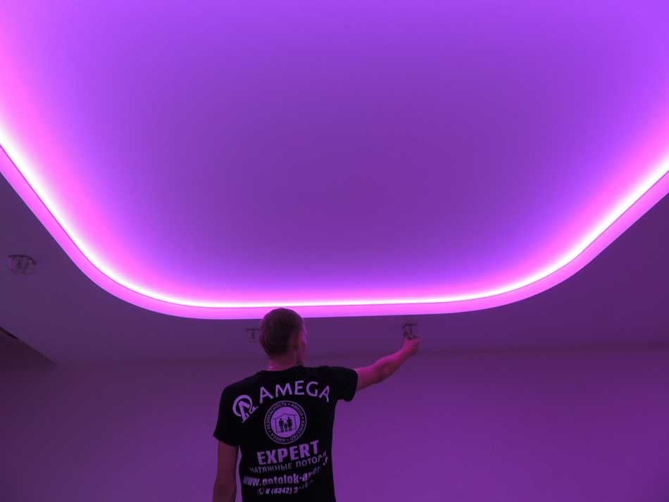 Применяется как правило в бесшовных потолках. Он имеет собственные минусы и плюсы.