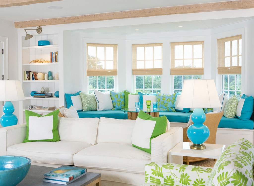 - Средиземноморский стиль – подбор оттенков зеленого, (фисташковый, изумрудный, оливковый), белый, голубой, синий, янтарный и терракотовый цвета.