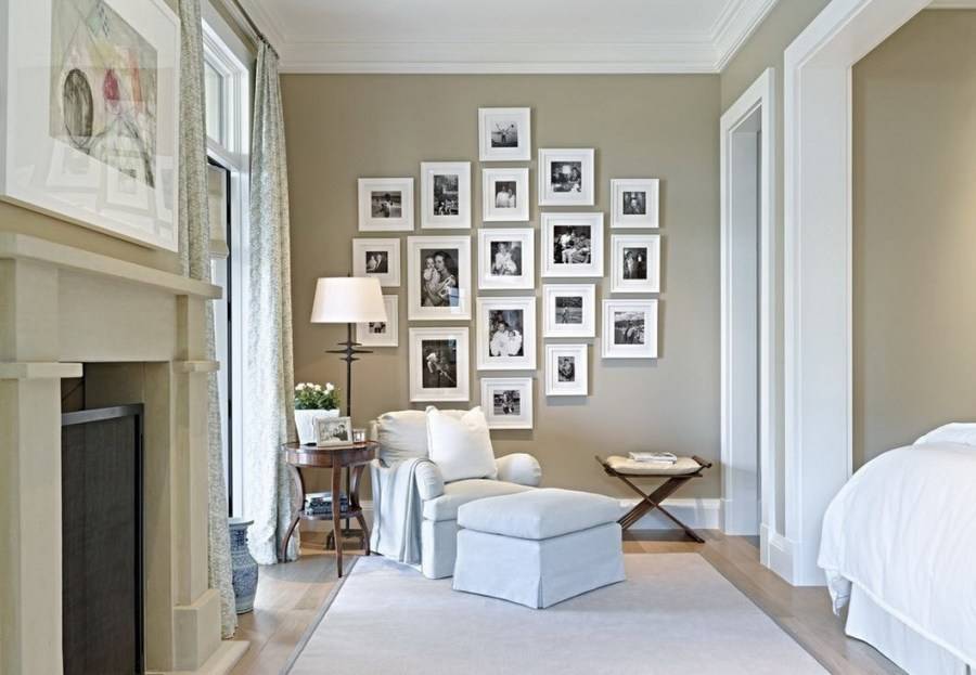 Оформление одной из стен фотографиями придает теплую атмосферу семейной идиллии и уюта. Запечатленные яркие мгновения жизни будут нести положительную энергию вне зависимости от настроения и погоды за окном.