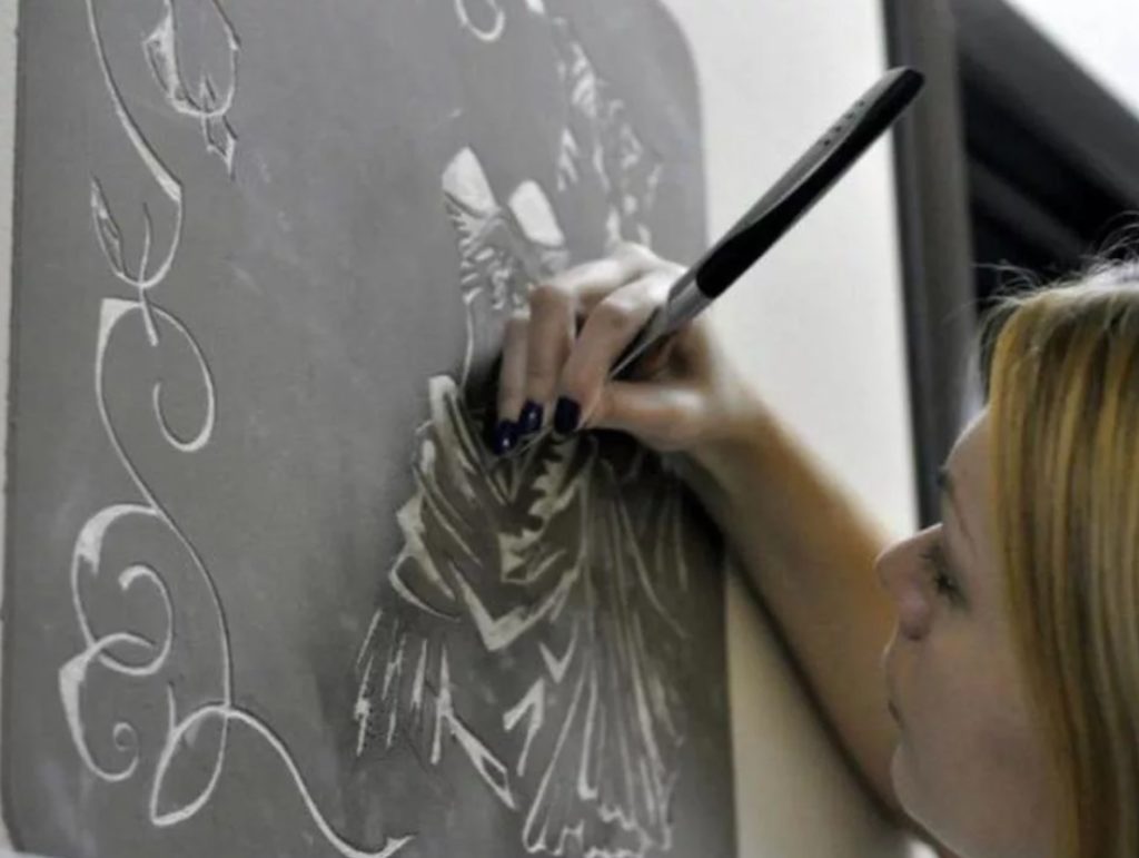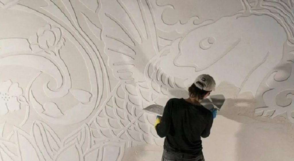 Вырезать узоры можно через 5 часов после того, как состав будет нанесен на стену.