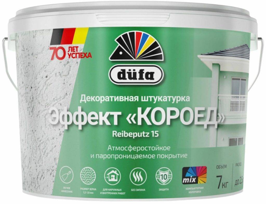 Кроме того, данный вид штукатурки долговечен, быстро сохнет, причём при любом уровне влажности в окружающей среде. Производители дают гарантию на 15 лет, при этом штукатурку можно мыть и покрывать ей, как помещения, так и фасады зданий.