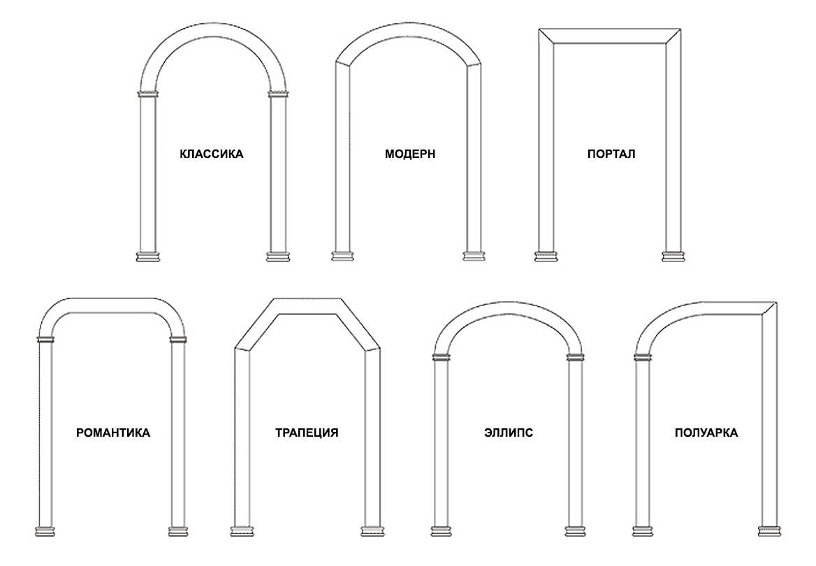 Различия заключаются в форме свода. По этому параметру выделяют следующие типы арок:
