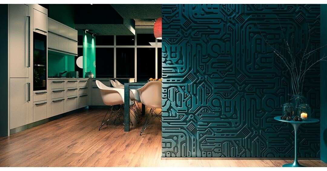 Позволяет максимально оптимизировать пространство. Такая форма удобно зонирует комнату и создает плавные переходы от поверхности стены в разные интерьерные предметы, например стать продолжением барной стойки или кухонного гарнитура.