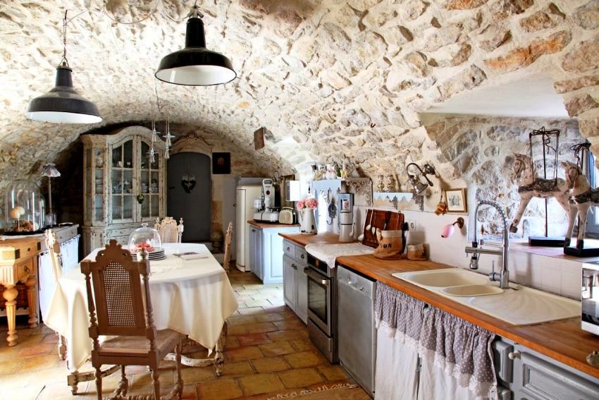 Отделка стенок кухни декоративным камнем: фото интерьера в средневековом стиле