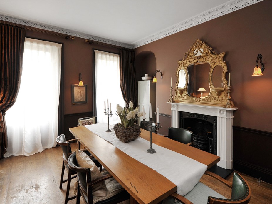 - Если стены дома или квартиры сложены из кирпича, их не обязательно подвергать дополнительной обработке. Но при желании можно покрасить часть поверхностей или выделить ниши и выступы другим цветом.