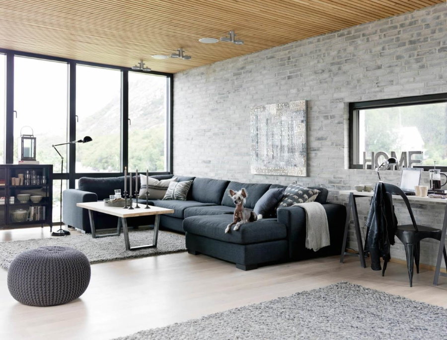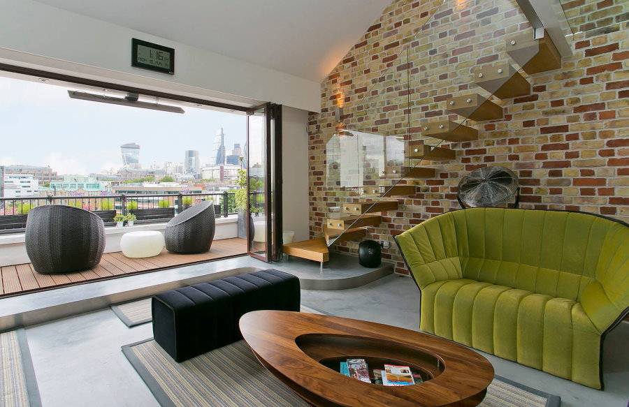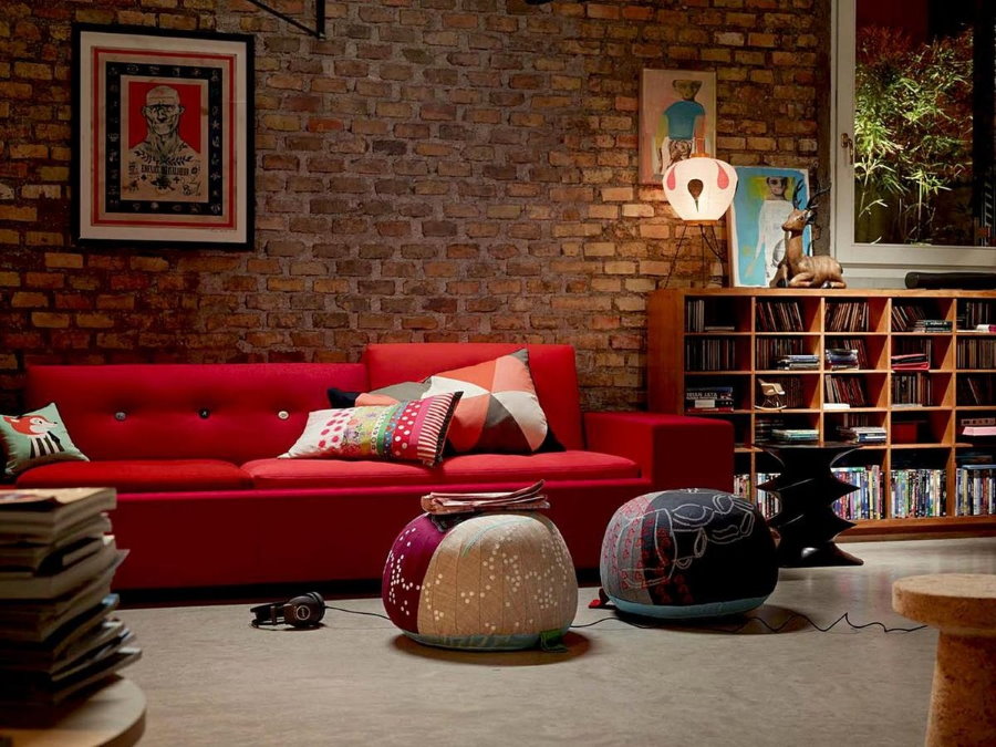 Кирпичная стена в гостиной стала модной не так уж и давно. После войны немалое количество бывших заводских и фабричных помещений стали сдавать в качестве жилья. Насколько удачной была эта идея, теперь сказать сложно, но так уж получилось, что заселили эти здания представители богемы, ценящие огромные окна, превосходный свет и большое пространство. Бедные художники, музыканты, артисты, обладающие безупречным вкусом, сумели оформить такие помещения настолько интересно, что такой дизайн превратился в отдельный стиль – лофт.