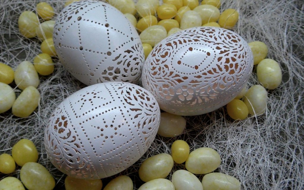 Пасхальные яйца также можно украсить, обвязав их крючком.