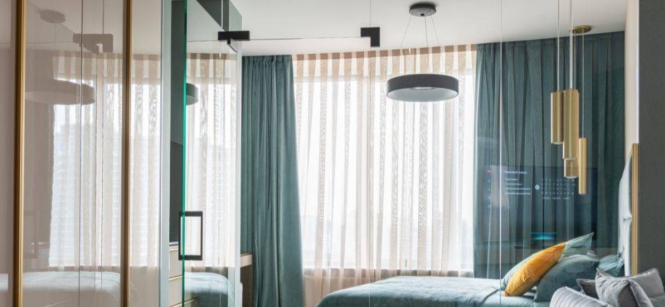 Потолочные гардины компактны, часто обладают простым «маскирующим» дизайном. Вписываются в интерьер в стиле модерн и минимализм.