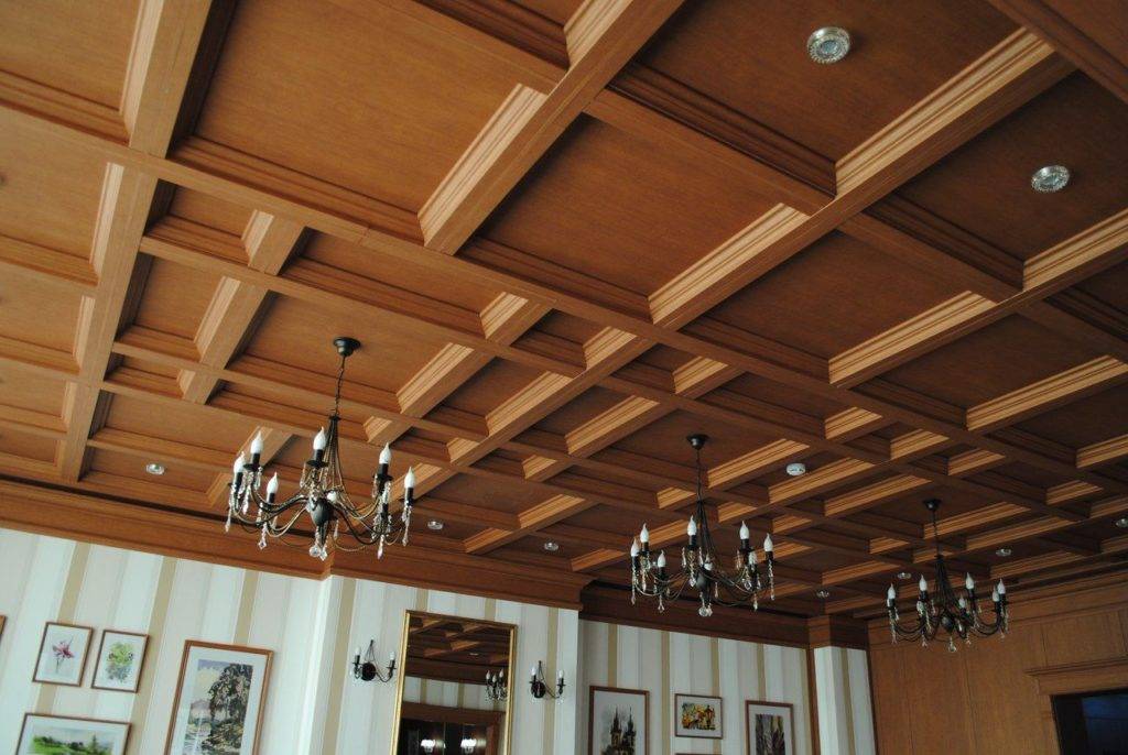 Декоративные панели – это самое дорогое потолочное покрытие из дерева. Их изготавливают под заказ для определённого помещения, под его размеры. Декоративные панели представляют деревянную основу и рельефные полосы, выполненные с узорами и резьбовыми украшениями. Полосы на потолке располагаются в форме квадратов или прямоугольников.