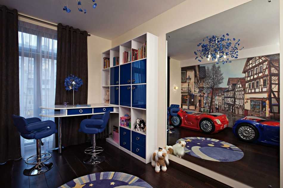 Интерьер детской комнаты для мальчикаСиняя детская комната для мальчика