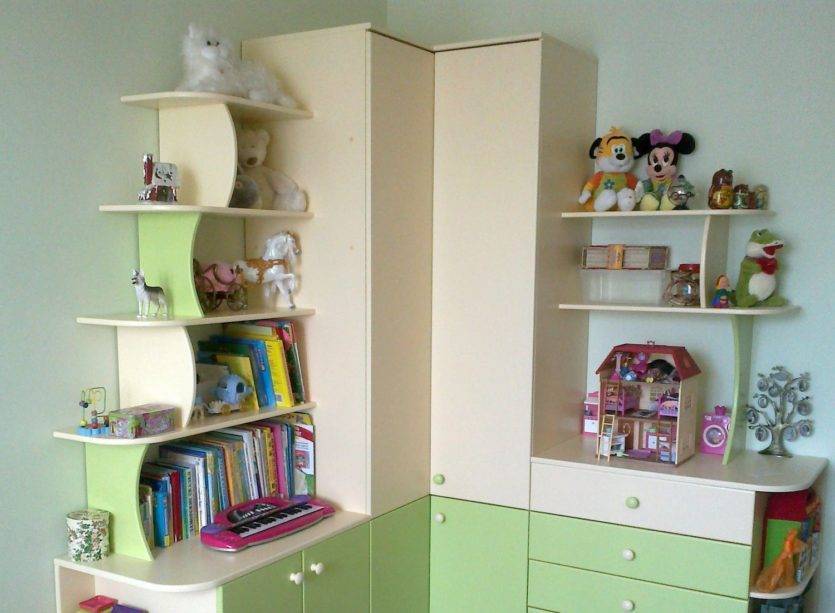 Комнаты со встроенными шкафами пользуются спросом. Если в наполнении представленных вариантов в магазине не оказалось подходящего, возможно выполнить его под заказ. Шкаф с полками необходимо подгонять под рост ребенка, потому что крохе сложно самому пользоваться шкафом, не подходящим ему по размеру.