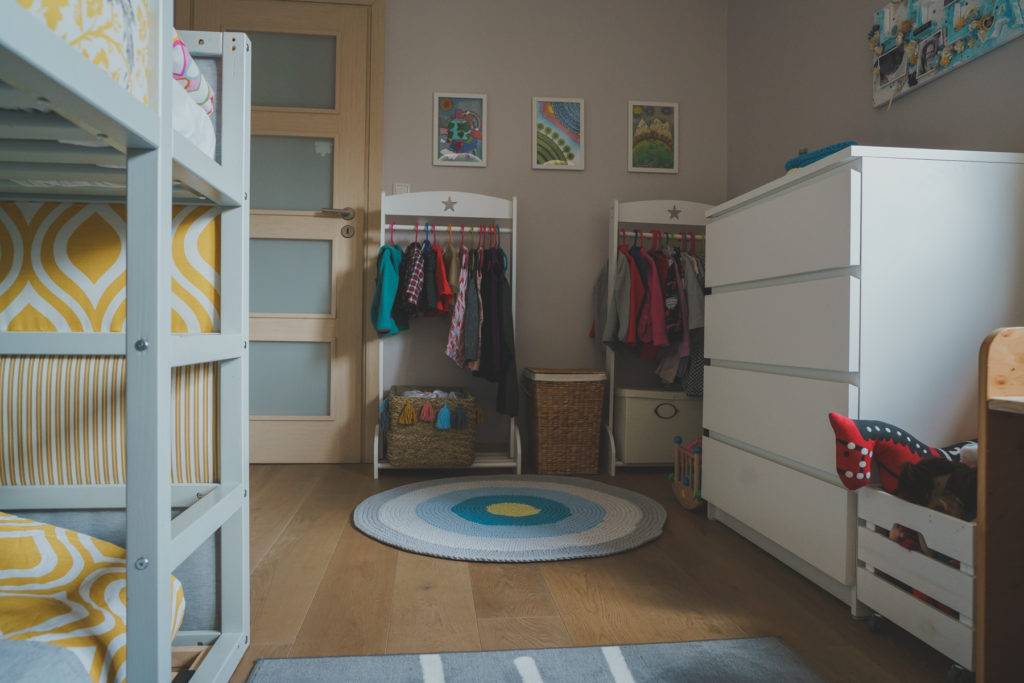 Если в одной комнате будет жить младенец и малыш постарше, следует запланировать место для вещей, которые потребуются при уходе за новорожденным. При этом планировать нужно так, чтобы не нарушить личные границы более взрослого ребенка.