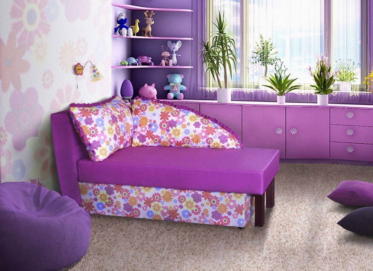 Такой диван отлично дополнит интерьер любой детской комнаты, не требуя много места для установки