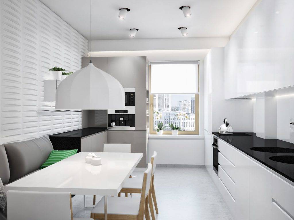 Для узкой кухни лучше всего подходит классический прямой диван, устанавливаемый вдоль стены