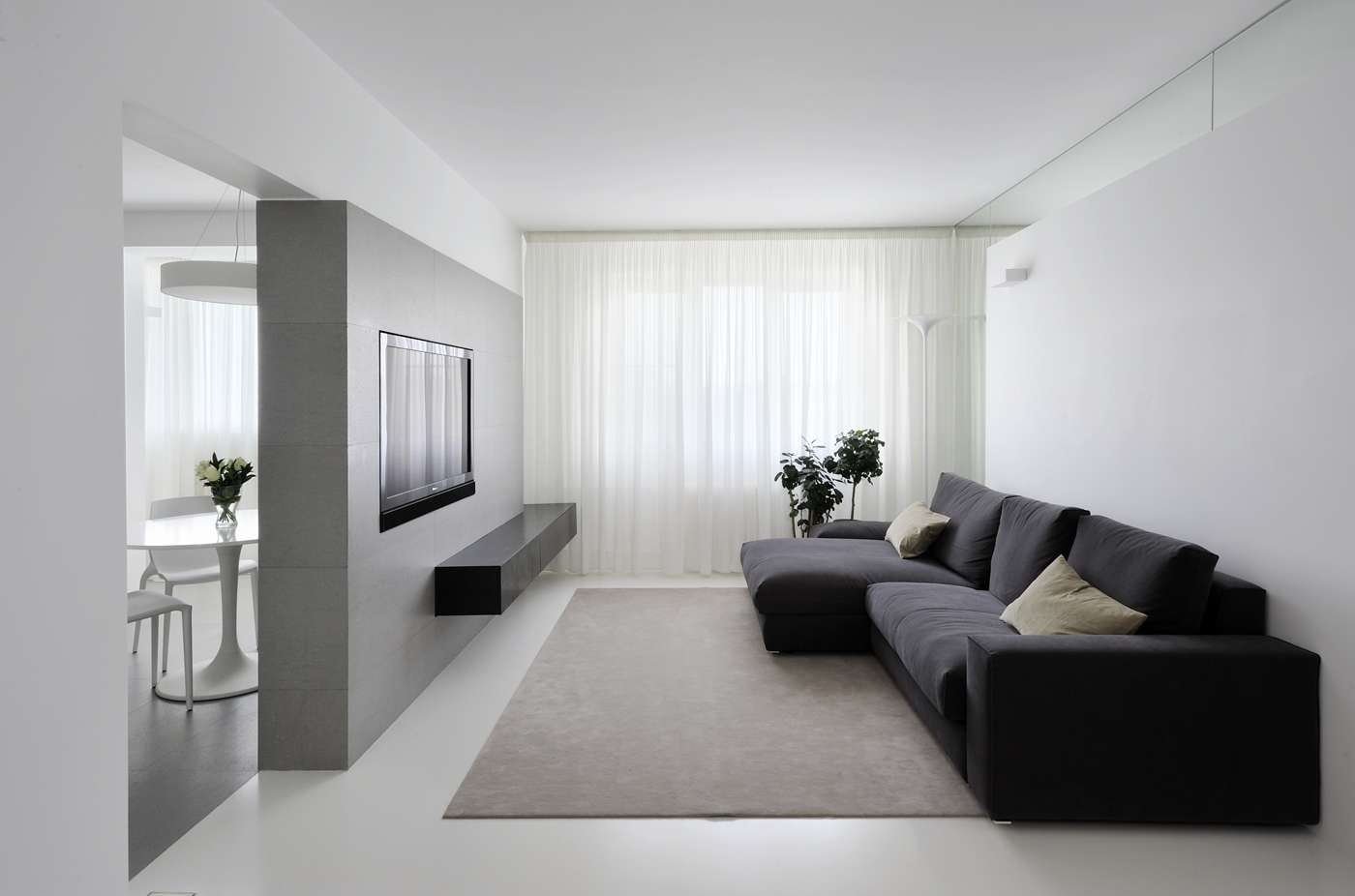 Чтобы интерьер не казался слишком блеклым, его можно оживить живыми растениями в горшках или парой ярких аксессуаров — подушками на диване, вазой, настенным панно и пр. Минимализм отлично подходит для интерьеров эконом-класса.