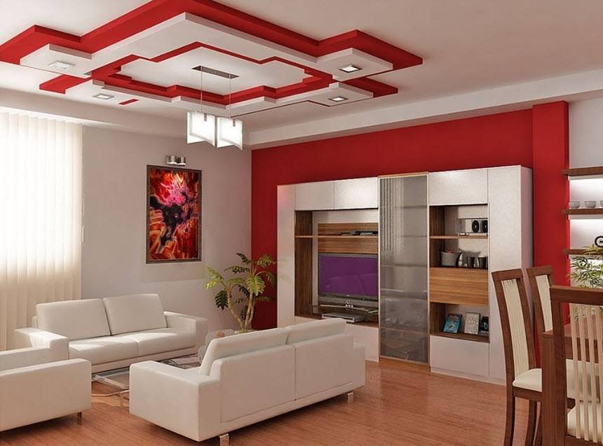 Чаще всего черно-белый интерьер гостиной дополняют парой красных штрихов. Это стильное трио смотрится не просто ярко, но и экстравагантно. Оно часто используется в стиле поп-арт, арт-деко, хай-тек, минимализм. Красными могут быть такие детали, как рисунок на шторах, плафон телескопического торшера, картина на стене, одно кресло.