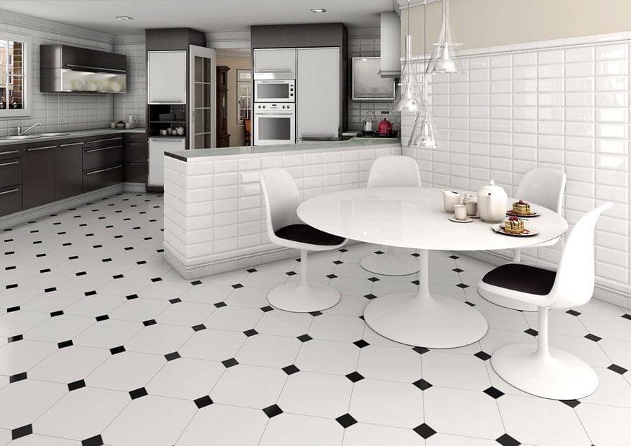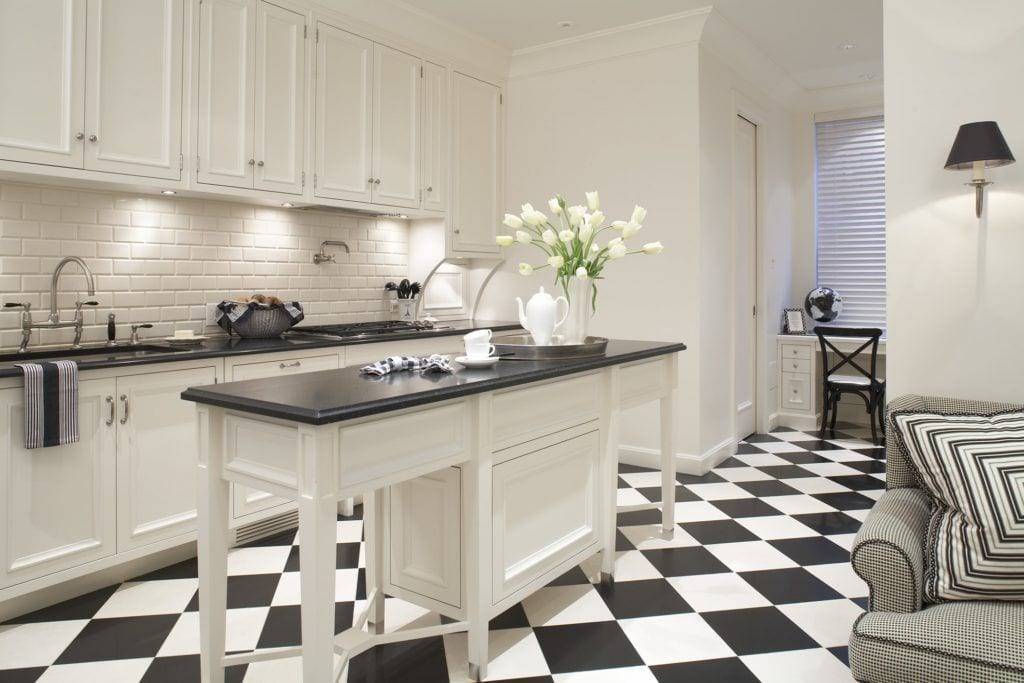 Черно-белый пол на кухне в шахматном расположение – это весьма популярный вариант. И данное оформление пола подходит для разных стилей будь то минимализм или хай-тек.