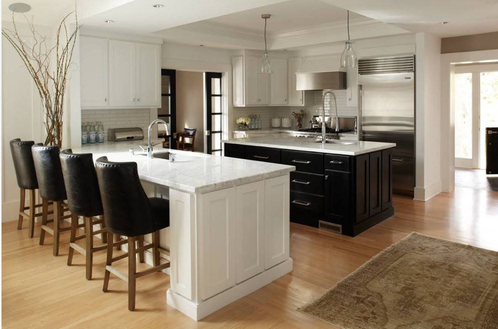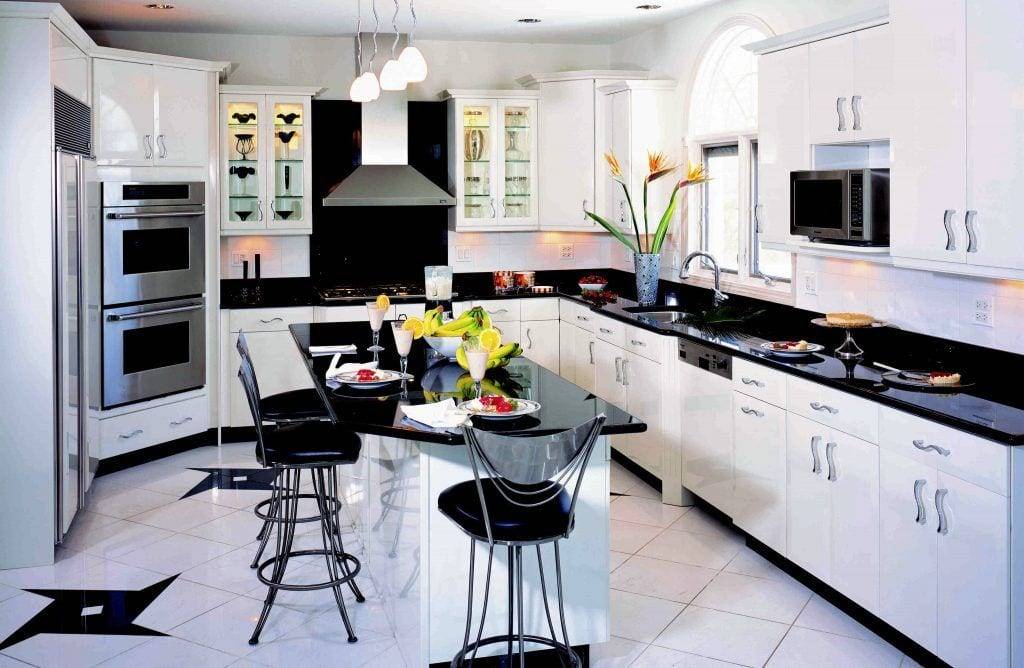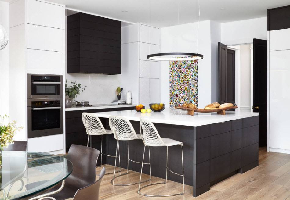 Вариаций распределения черного и белого цвета в интерьере кухни существует огромное количество, приведем в пример лишь некоторые, наиболее популярные: