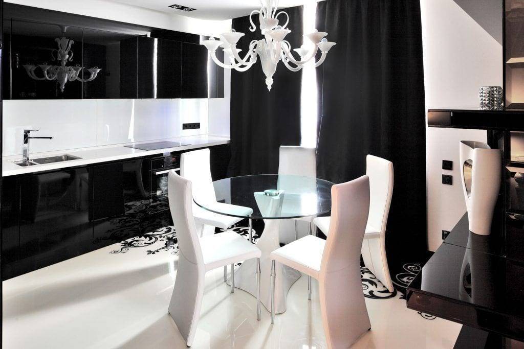 И только попав в «черно-белую обстановку» начинаешь ощущать всю непревзойденность такого выбора цвета. Очень эффектно выглядят такие сочетания выглядят на кухне. Поразительно, что такое цветовое решение вписывается в абсолютно любой стиль от классики до современного.