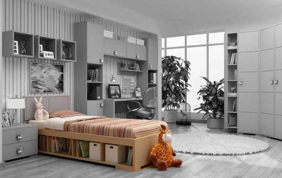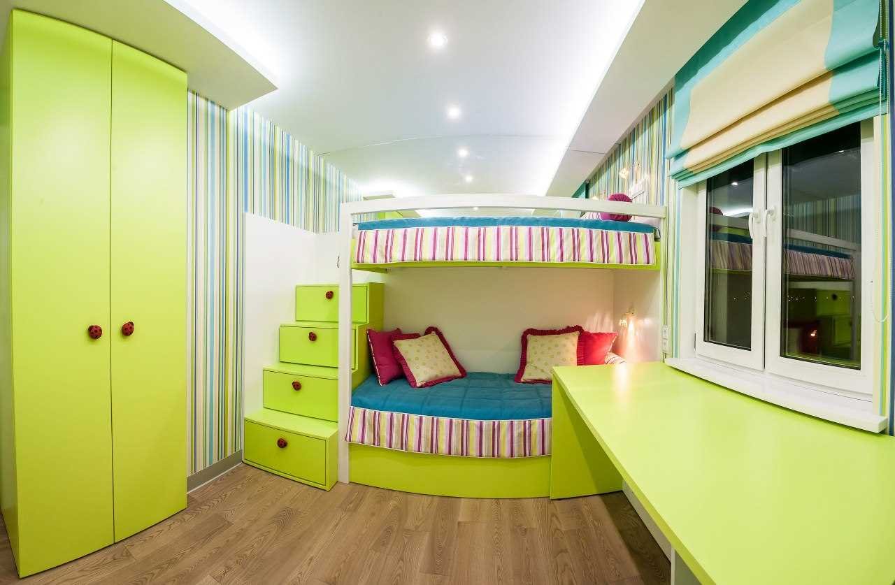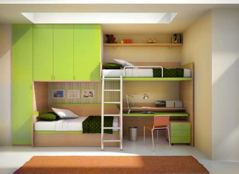 м. стоит выбирать трансформирующиеся конструкции, но при этом стоит удостовериться в качестве всех креплений, фурнитуры и других деталей. На кровать необходимо подобрать матрас среднего уровня жёсткости для детей школьного возраста. Малышам требуется более жёсткое основание. Также важно продумать систему освещения, зону хранения вещей и игрушек, занавески на окна и иные существенные детали.