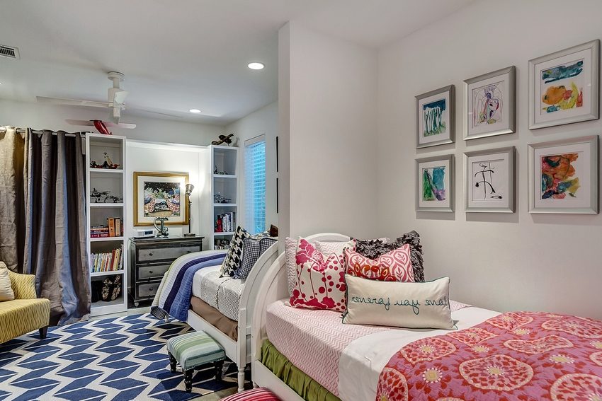 Важно обустроить комнату так, чтобы свой личный уголок был у каждой сестры. Это одинаково важно и для двойняшек, и для разновозрастных сестер.