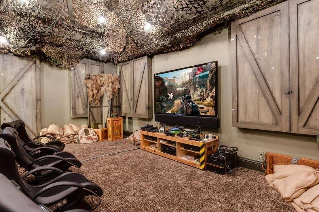 Домашний кинозал (игровой зал) стилизованный под военный бункер