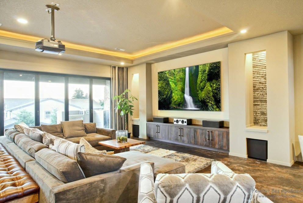 Дизайн домашнего кинотеатра в интерьере современной гостиной