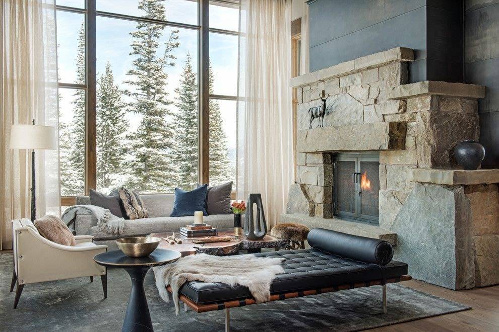 Лучше всего будет смотреться в гостиной с одной зоной отдыха и минимальным количеством мебели. Но стильно будет смотреться и отделённая стеклянной перегородкой спальная зона.