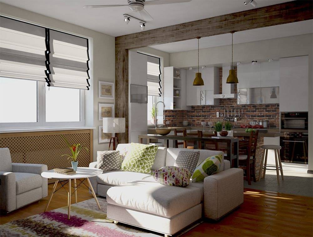 Гармоничная кухня-гостиная: студия 25 кв. м с визуальным разделением пространства