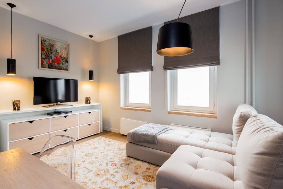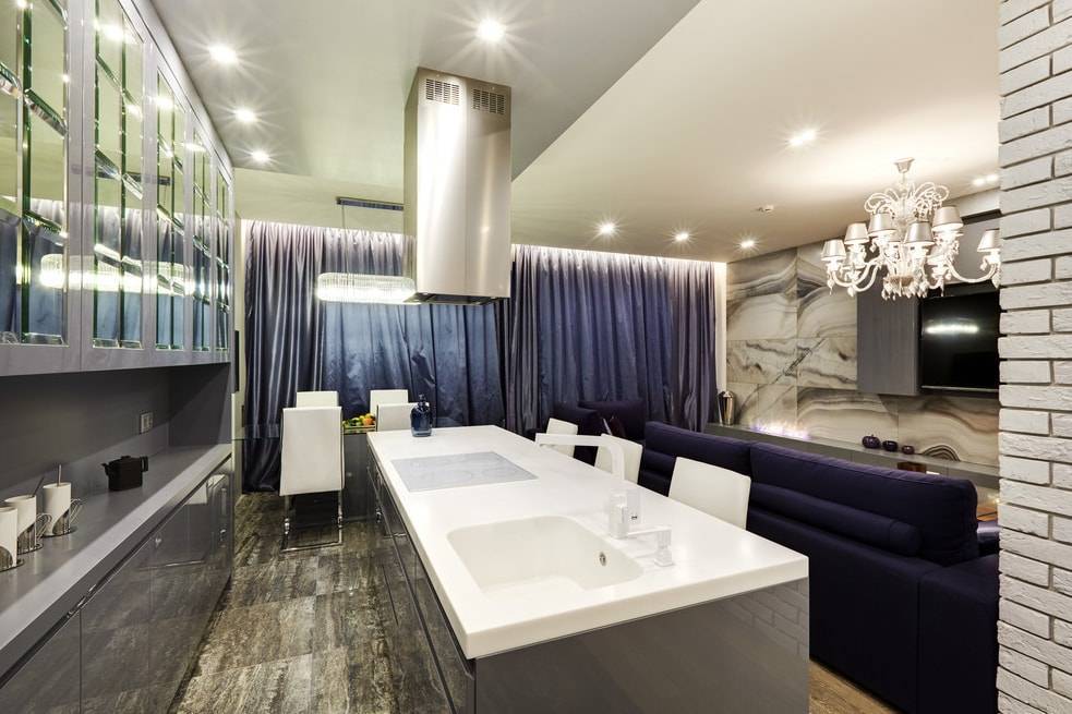 Экономия на технике. В гостиной без телевизора не обойтись, но и на кухне для многих телевизор — обязательный элемент интерьера. Имея совмещенную территорию, вы можете обойтись одним экраном. Это позволит сэкономить деньги или приобрести дорогостоящую модель вместо двух бюджетных. То же касается и кондиционера — вы решаете вопрос комфортного климата сразу в двух комнатах.