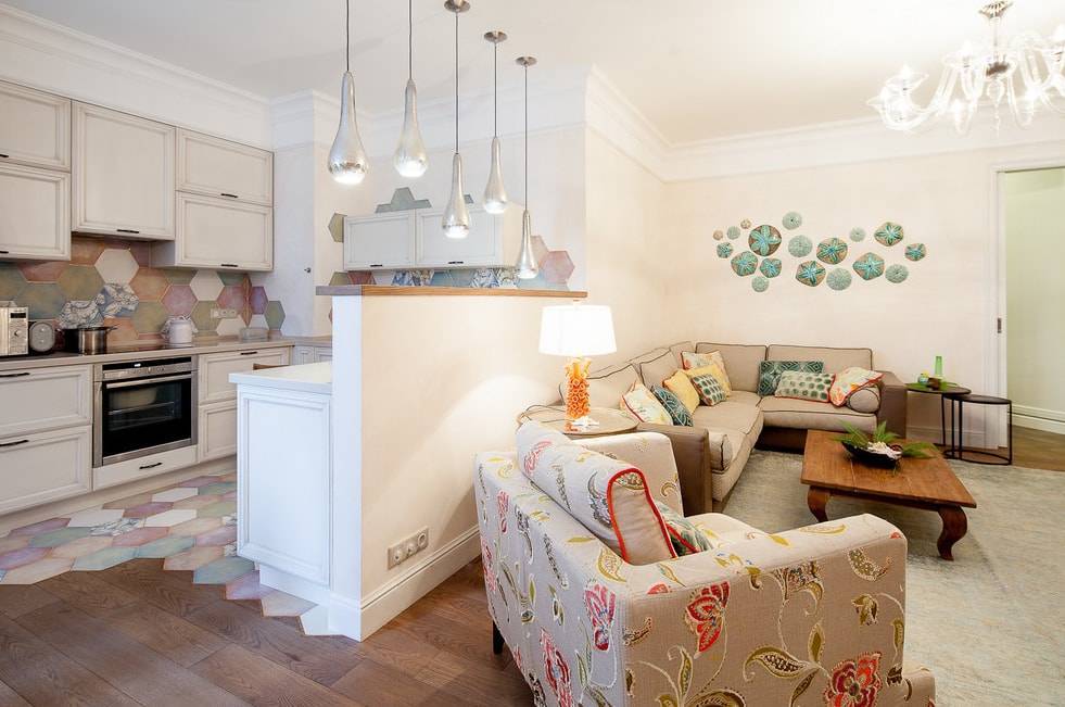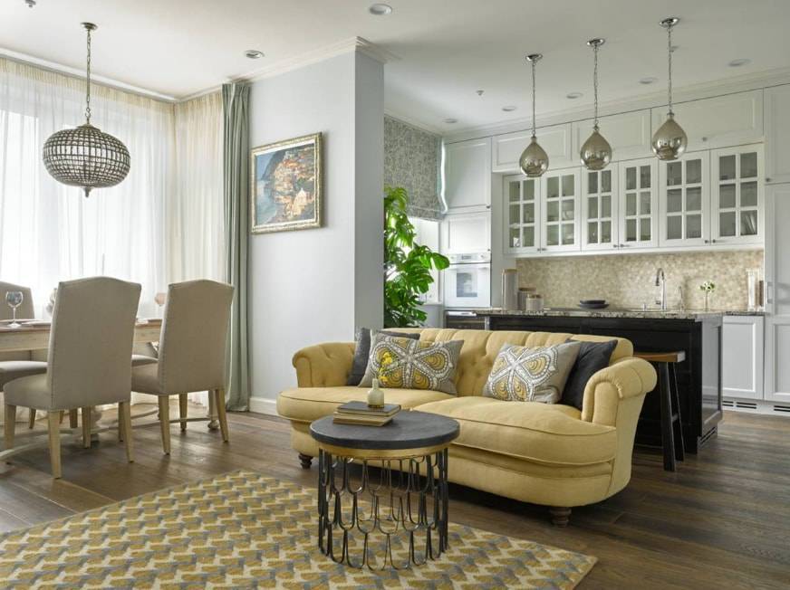 Дизайн гостиных, совмещенных с кухней: варианты зонирования пространства