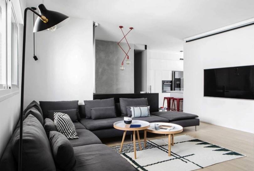 - несложно скорректировать геометрию площади с помощью мебели одной раскраски;