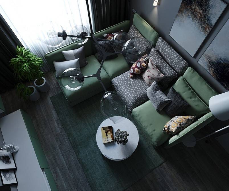 Зеленый цвет успокаивает и расслабляет, гармонируя с мозговыми волнами, идеально подходит для отдыха. Оттенок может быть выбран в соответствии с индивидуальными потребностями — чем ярче цвет, тем более просторным станет интерьер.