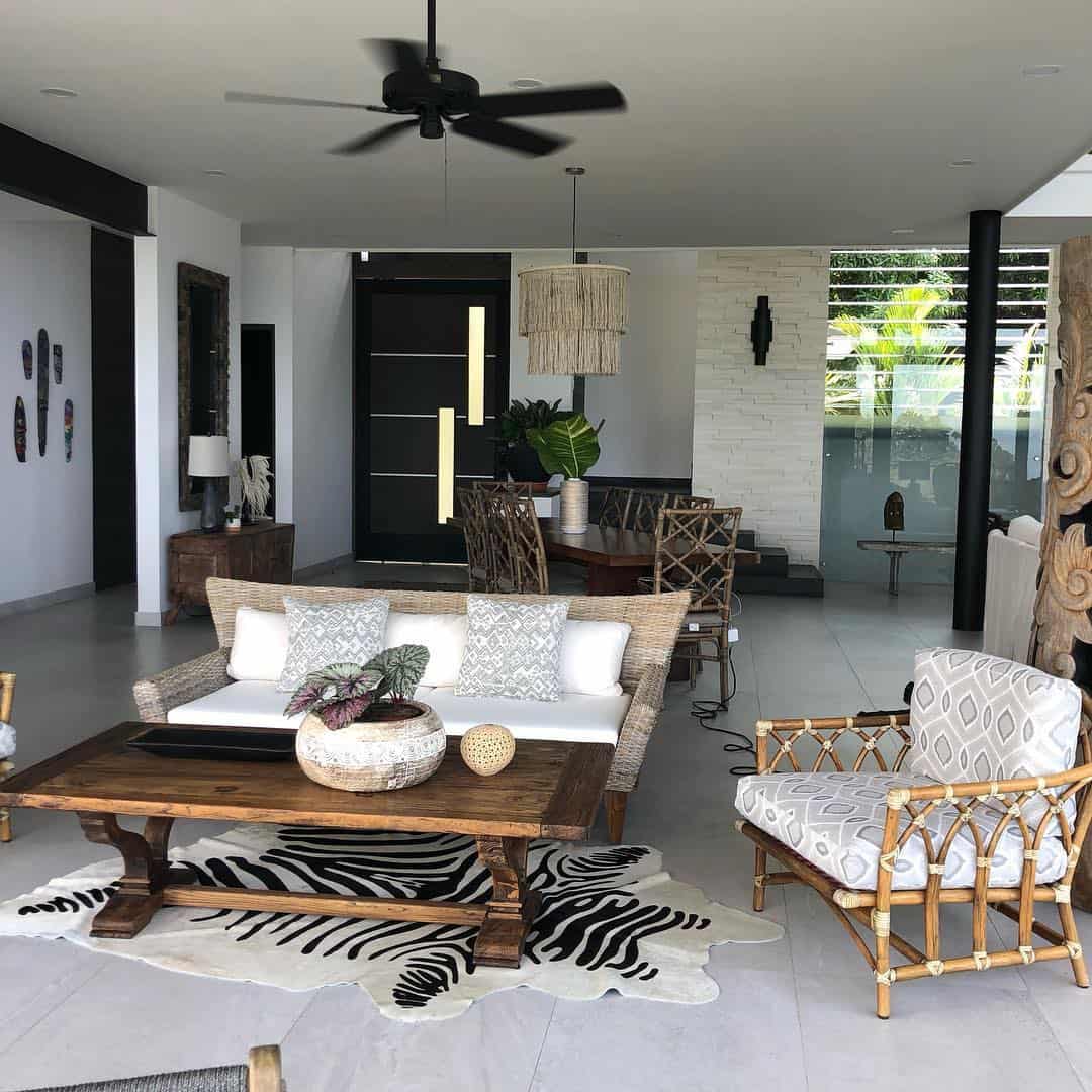 Модный интерьер главной комнаты дома в 2022 году разрабатывается по следующим принципам: