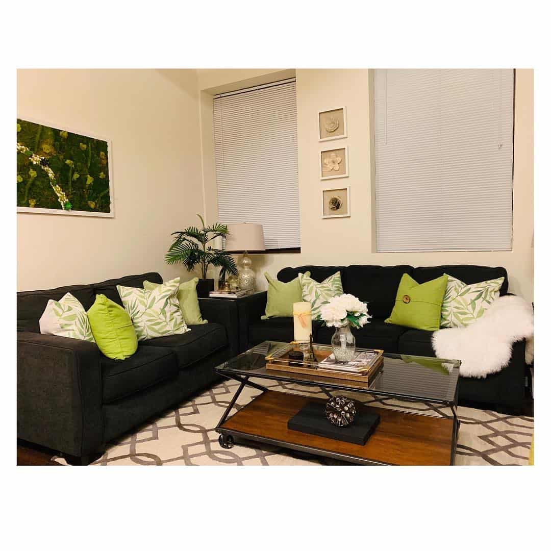 Если же наоборот вы выкрасили стены в темный цвет, то они прекрасно будут сочетаться, например с бежевым кожаным диваном. Если все это дополнить яркими аксессуарами, то удастся избавиться от ощущения давящего пространства и оставить темные элементы.