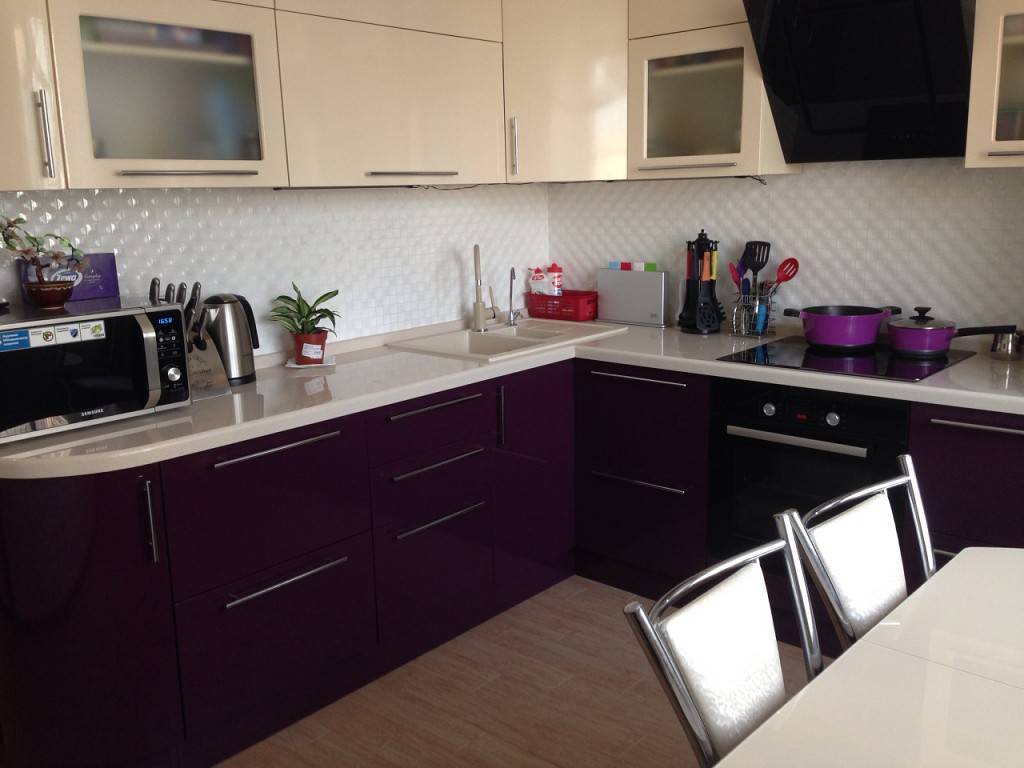 Этот цвет становится свежее и мягче в сочетании с белым в пропорции 1:1, а лучше 1:2. Бело-фиолетовая кухня представлена в следующей подборке фото.