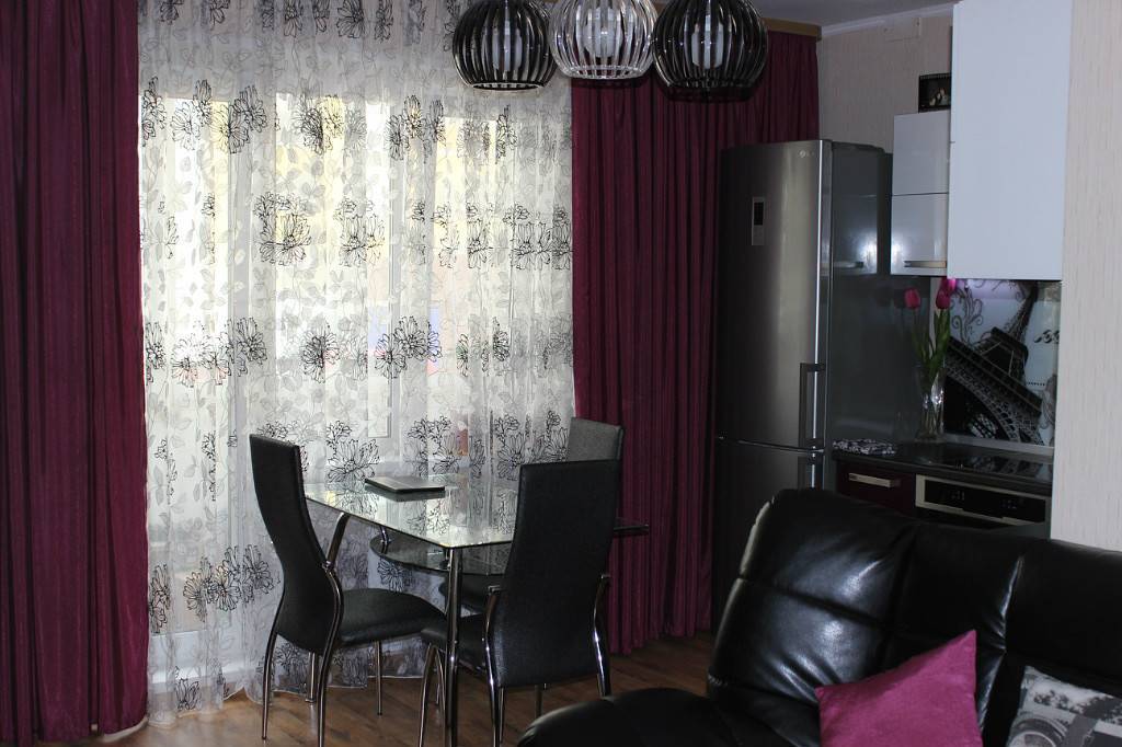 Легкий способ сделать кухню стильной — использовать фиолетовый цвет в текстиле, а именно в обивке мебели и шторах. Особенно красивы будут вельвет и бархат.