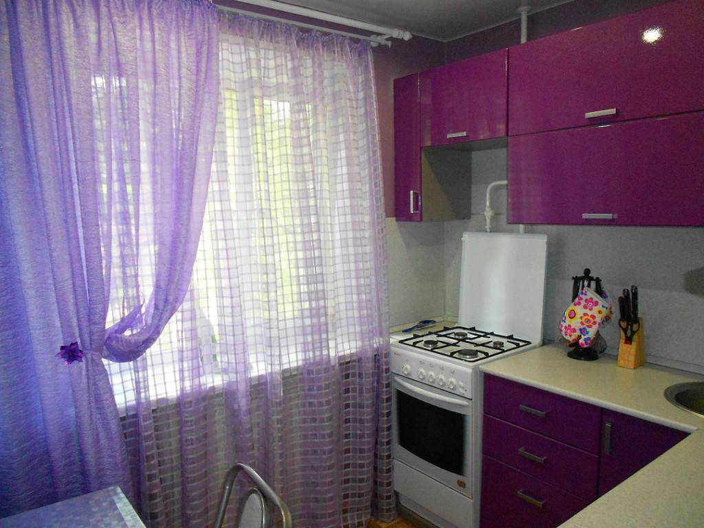 Если помещение кухни небольшое, не стоит использовать в интерьере ярко-фиолетовый цвет, лучше применить его только в некоторых деталях;