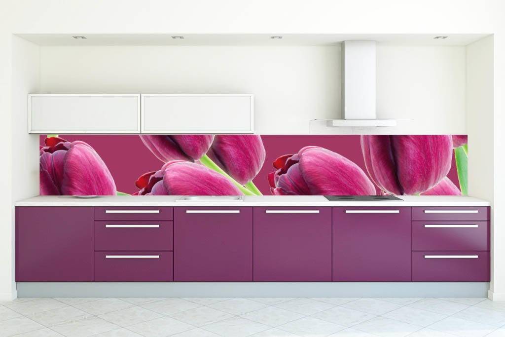 Отличный вариант для обустройства кухни — выполнить только нижние или только верхние фасады кухни в фиолетовых тонах. Остальная часть может быть белой, серой, лиловой. Что касается материала изготовления такого гарнитура, то тут следует руководствоваться выбранным стилем интерьера.