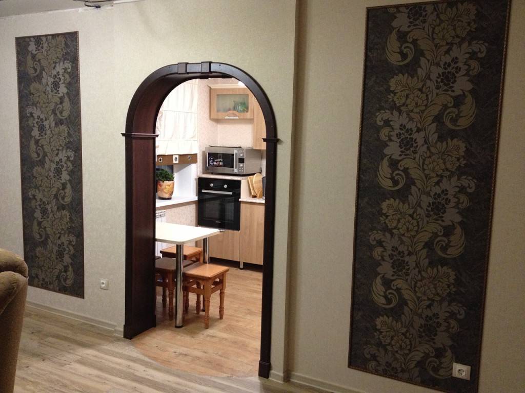 Происходит стирание границы между кухней и соседней комнатой. Арочная конструкция может быть неприметным переходным элементом между помещениями, а может выполнять роль акцентного украшения. Благодаря большому количеству замысловатых форм дверной проем может стать своеобразной фишкой вашего дома.