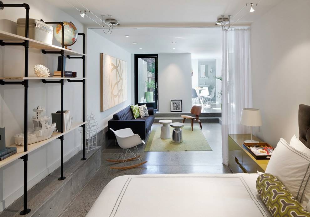 Минимализм – любимый стиль маленьких гостиных, которые планируется совместить со спальней. Фото интерьеров в этом стиле настолько много, что не имеет смысла описывать его лишний раз. Достаточно добавить, что такое помещение подойдет людям с выдумкой, фантазией.