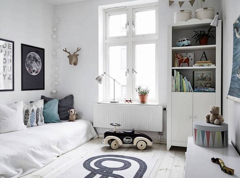 Скандинавский стиль. Девиз этого направления — легкость, простота и экологичность, поэтому он идеально вписывается в небольшие помещения. Использование светлых оттенков делает комнату просторнее, много внимания уделяется освещению. Несмотря на некоторую лаконичность, интерьер выглядит по-настоящему детским.