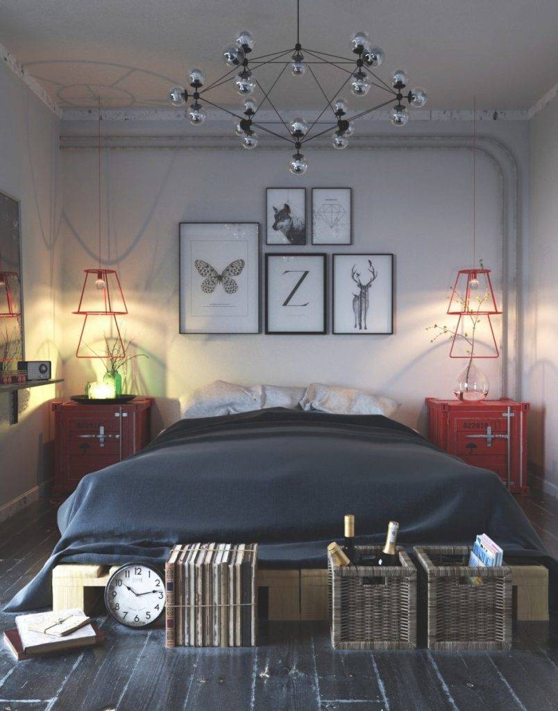 - Минимум деталей. Полностью отказываться от декора необязательно, но можно оформить комнату максимально лаконично. Оригинальные часы и винтажные картины вполне впишутся в стиль.