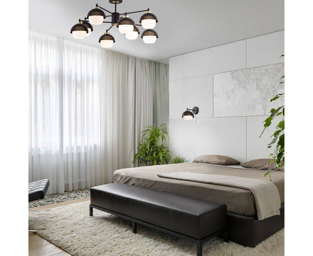 Индивидуальный источник освещения нужен каждой зоне. В тесной комнатке, площадью не более 7-10 «квадратов», достаточно будет скромной потолочной люстры, бра над кроватью, настольной лампы в рабочей зоне. Если же помещение более просторное, в нем есть возможность выделить место для приема гостей, занятий любимым хобби, то, как минимум один осветительный прибор, размещают там.