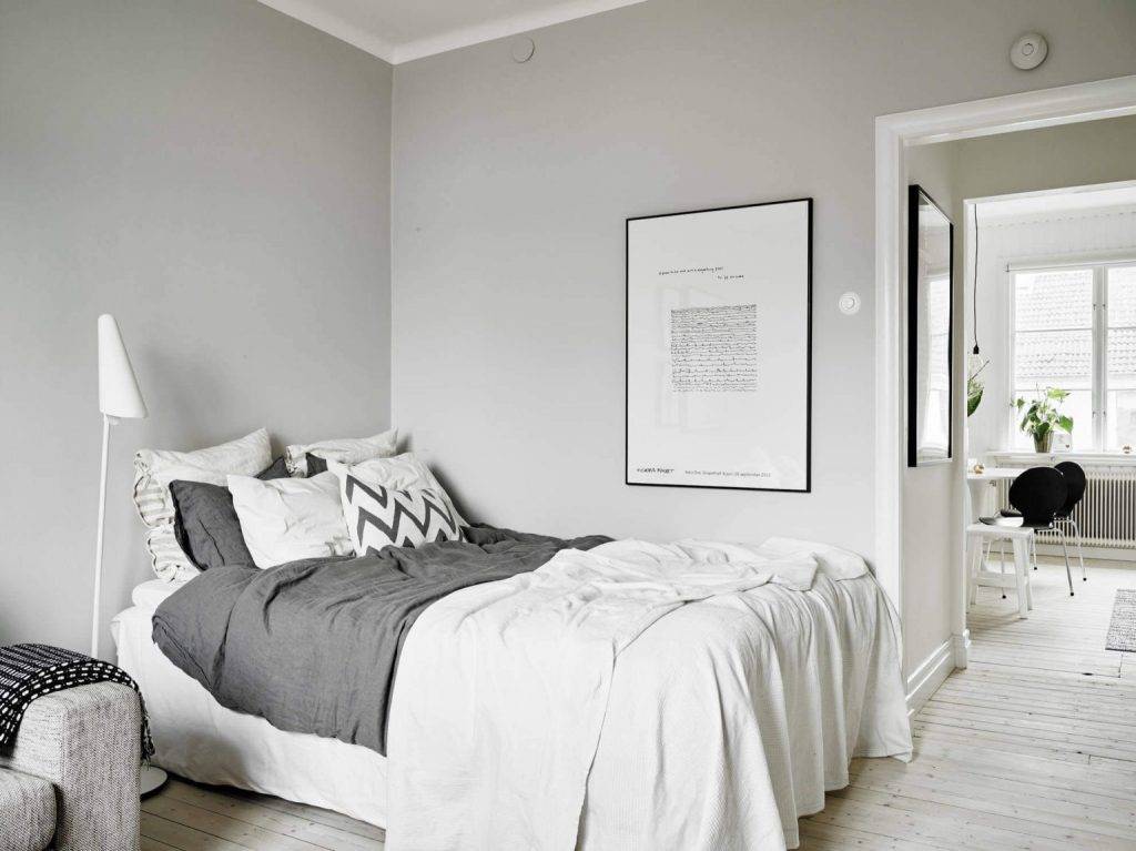 Вы можете добиться такого же классного эффекта, когда выберете набор разных оттенков серого. Однако избегайте использования в спальне совершенно прохладного оформления. Эффектно балансируйте цвета, добавив приятный и теплый текстиль. Приятного результата также даст смешение холодных и теплых оттенков серого в сочетании с белым и тканями с разной структурой и фактурой, а также нежным узором. В таком интерьере интересным цветовым акцентом станет, например, синяя подушка, которая привлечет внимание и одновременно подчеркнет тонкую игру цветов во всей комнате. Без нее интерьер был бы слишком однообразным