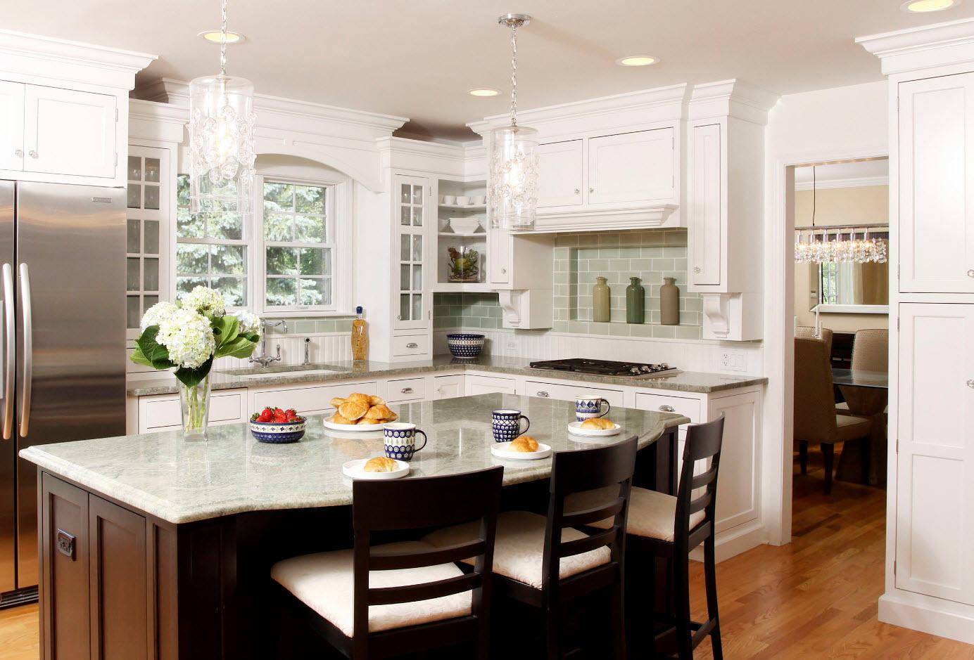 То есть в прямоугольной кухне, он должен иметь форму прямоугольника, а квадратное помещение требует остров в виде квадрата. Круглой формы острова смотрятся на кухне, как чужеродные детали интерьера.