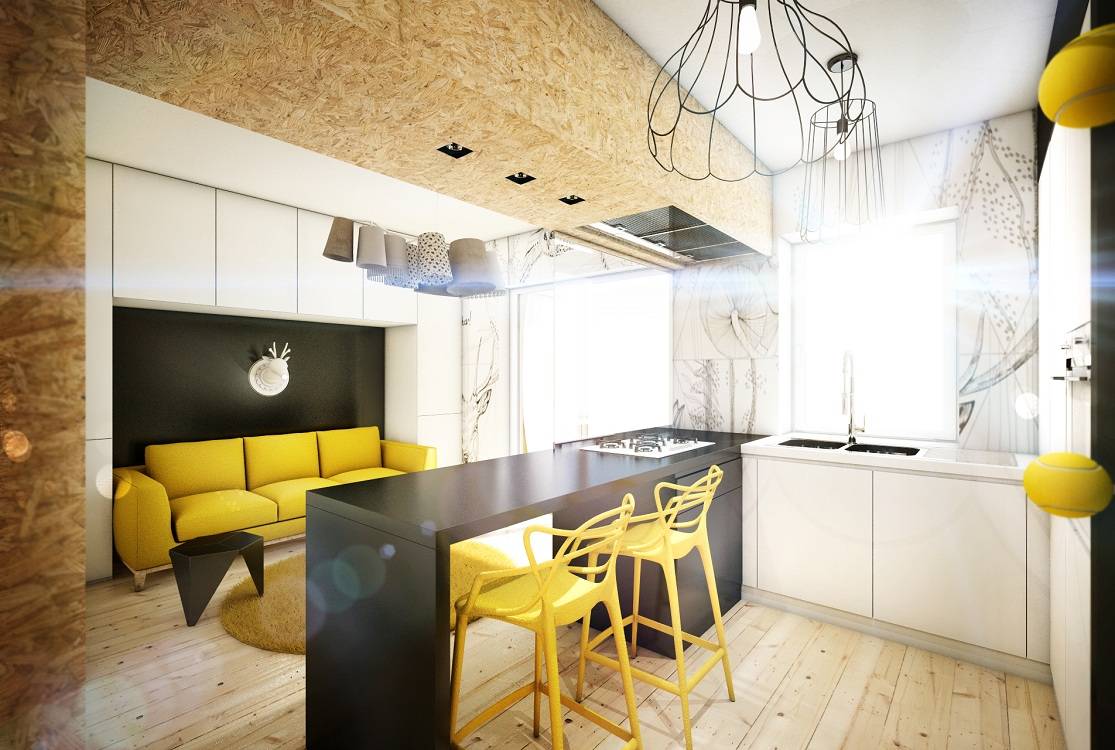 Проект кухни-студии в 17 квадратных метров можно составить самому. Прежде всего решите, на какой зоне будет сделан акцент. Если вы любите готовить, пользуетесь большим количеством бытовой техники, акцентируйте рабочую зону. Если же готовка не отнимает много времени, лучше сосредоточиться на месте для отдыха. Вариантов планировки студии существует немало. Рассмотрим их.