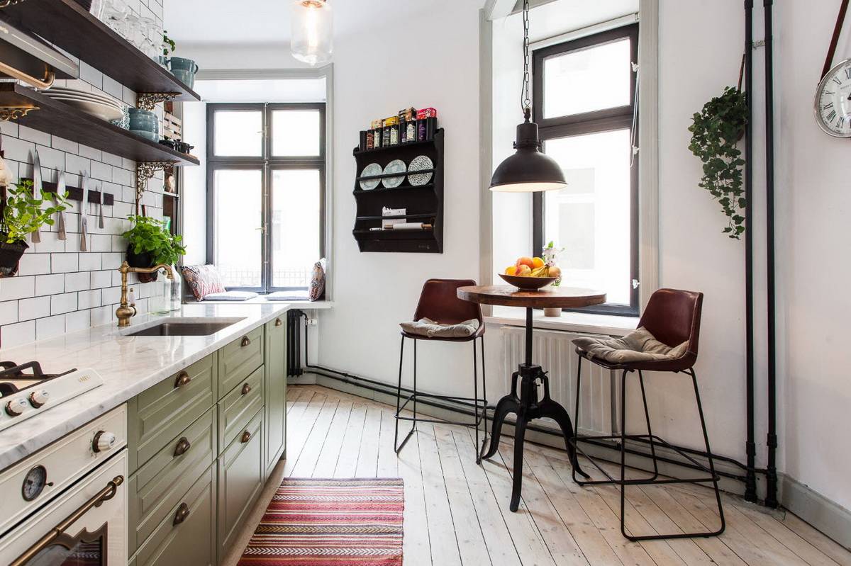 Можно и вовсе обойтись без верхних шкафов — получите больше воздуха в помещении.