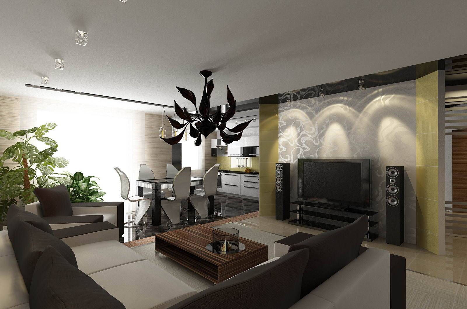 Модный интерьер кухни-гостиной в квартире